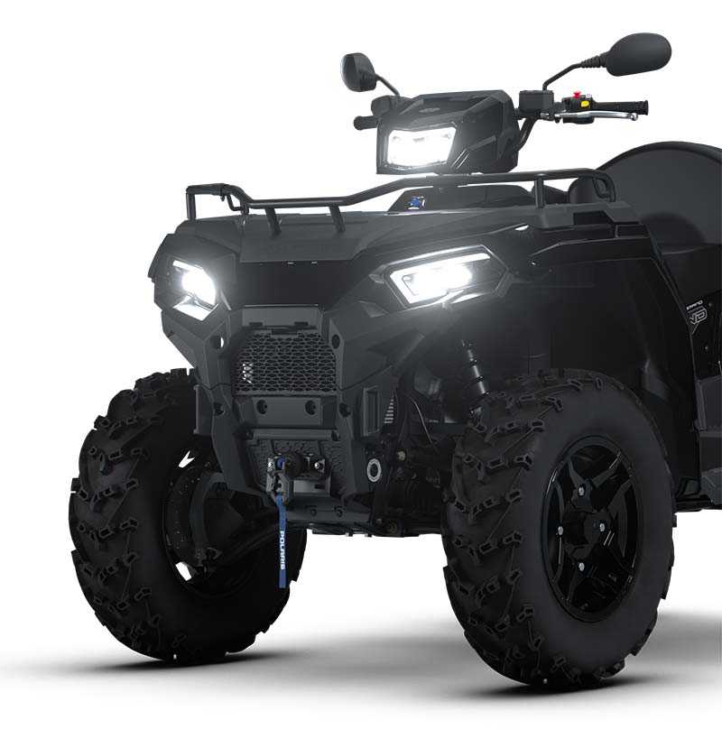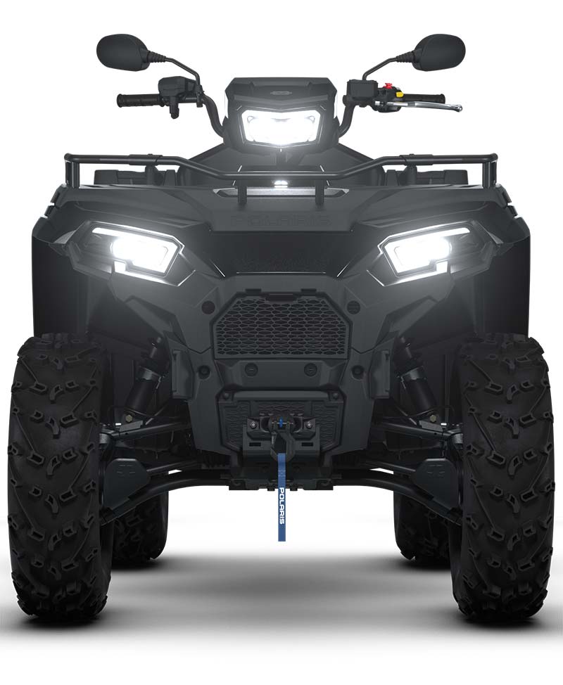 3 modes de conduite : Standard / Travail / Performance, Prise électrique 12 volts, port de charge lente intégré, pré-câblé pour chauffe-mains et chauffe-pouces, système de sécurité activé par code PIN, Treuil de 1 587kg (3 500 lb) avec corde synthétique et NOUVEAU système d'arrêt automatique, Rallonge de porte-bagages avant, benne basculante, protections de bras triangulaires avant et arrière, plastiques peints